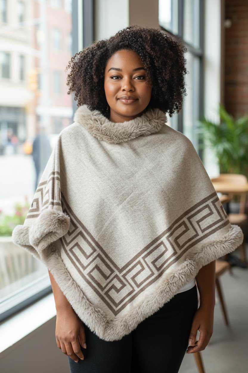 Jolie cape en fausse fourrure.
